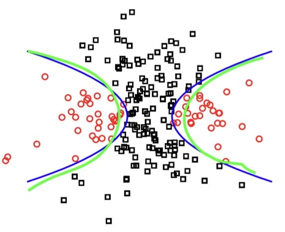一个核的例子(蓝色:Ground Truth,绿色:学习分类边界)